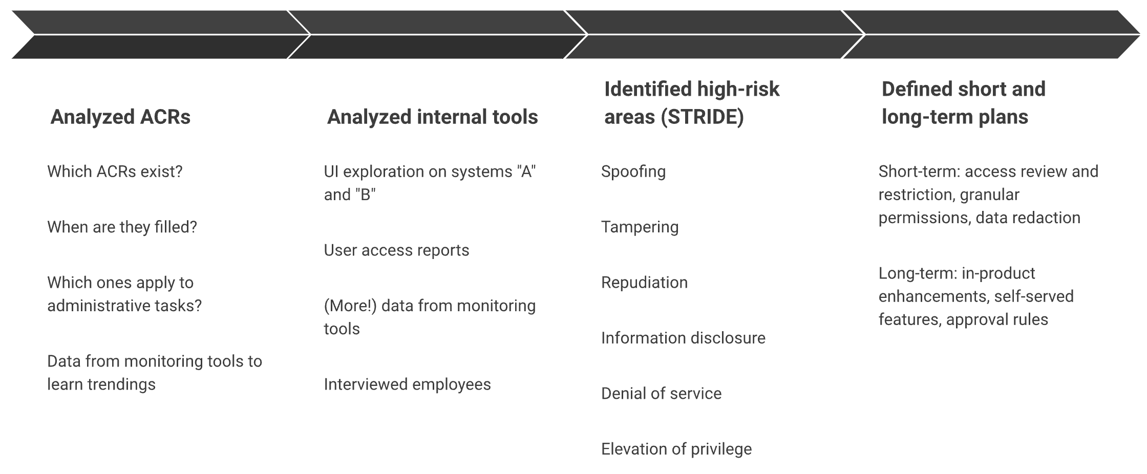 The process proposed and followed here served as model so that other product teams could perform security review on their own areas